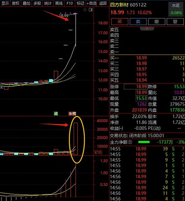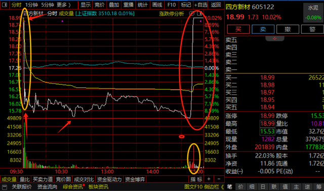 再来看看,来财哥是如何耍大牌的吧:早盘竞价阶段,市场的两个6段位均高开4%,而来财哥顶了“一字”,算起来是4个“一字”了,可见喜欢它的人众多。可变故来得太快了,开盘后,来财哥被核按钮了,盘中两度跌停,形成了“天地”。难道就这样失败了吗?来财哥不服气呀,午后14时41分后,只见它怒发冲冠,拔地而起、直冲云霄,用了不到5分钟,演绎了“地天”剧幕。不得不让人大开眼界呀,要知道,临近尾盘,大盘是在跳水的,这在逆市而行呀,来财哥财大气粗,奈何么?